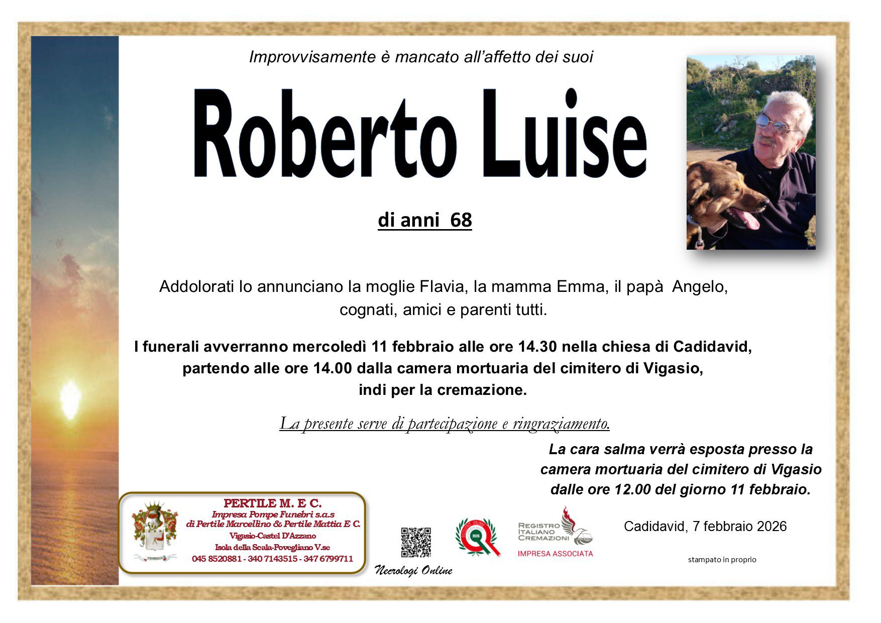Moreno Pertile “Quando cadono le foglie nel tramonto restano soltanto i ricordi felici ed il rimpianto di una vita trascorsa; noi siamo gli amici umili e silenziosi e vorremmo talvolta non esserci se la vita non richiedesse la nostra presenza.” Ricordiamo i nostri cari Necrologi Online Montresor Adriano Entra nel necrologio Rafani Rosa Entra nel necrologio Corsini Lucia Entra nel necrologio Load more