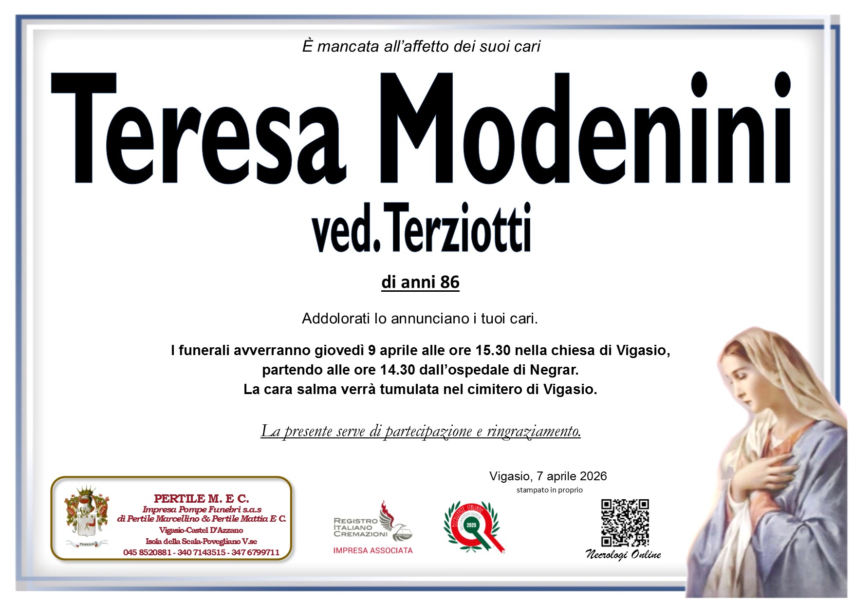 Moreno Pertile “Quando cadono le foglie nel tramonto restano soltanto i ricordi felici ed il rimpianto di una vita trascorsa; noi siamo gli amici umili e silenziosi e vorremmo talvolta non esserci se la vita non richiedesse la nostra presenza.” Ricordiamo i nostri cari Necrologi Online Modenini Teresa Entra nel necrologio Sgulmaro Agnese Entra nel necrologio Cuccarolo Giuseppe Entra nel necrologio Load more