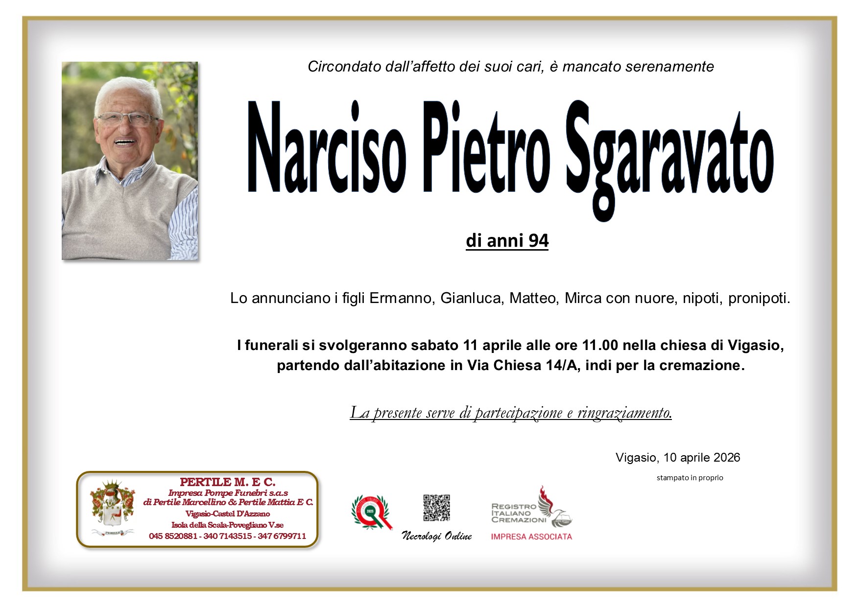 Moreno Pertile “Quando cadono le foglie nel tramonto restano soltanto i ricordi felici ed il rimpianto di una vita trascorsa; noi siamo gli amici umili e silenziosi e vorremmo talvolta non esserci se la vita non richiedesse la nostra presenza.” Ricordiamo i nostri cari Necrologi Online Sgaravato Narciso Pietro Entra nel necrologio Modenini Teresa Entra nel necrologio Sgulmaro Agnese Entra nel necrologio Load more